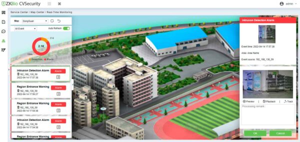 ZKBioCVSecurity menyediakan platform keamanan berbasis web yang komprehensif dengan adopsi teknologi biometrik hybrid dan visi komputer. Ini berisi beberapa modul: Personil, Waktu & Kehadiran, Kontrol Akses, Manajemen Pengunjung, Parkir, Kontrol Lift, FaceKiosk, Manajemen Video Cerdas, Modul Deteksi Topeng dan Suhu, Konsumsi Online/Offline, Patroli, Adegan Cerdas, Pusat Operasi, Pusat Layanan, dan sub-sistem cerdas lainnya.